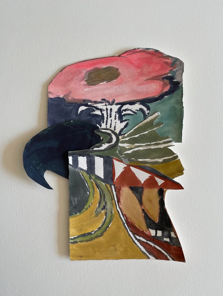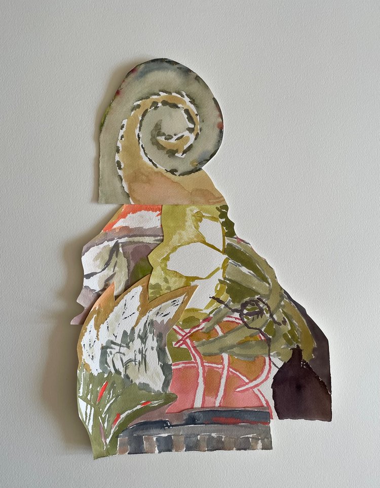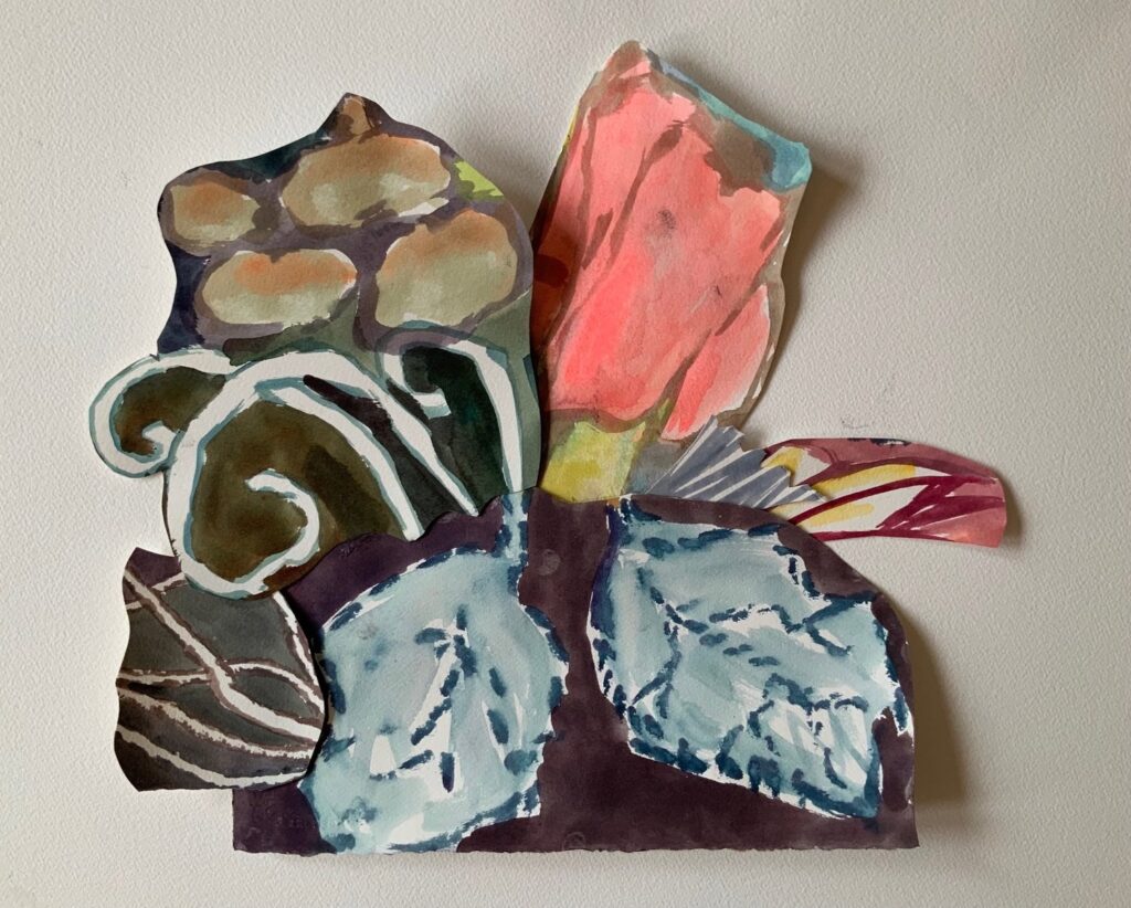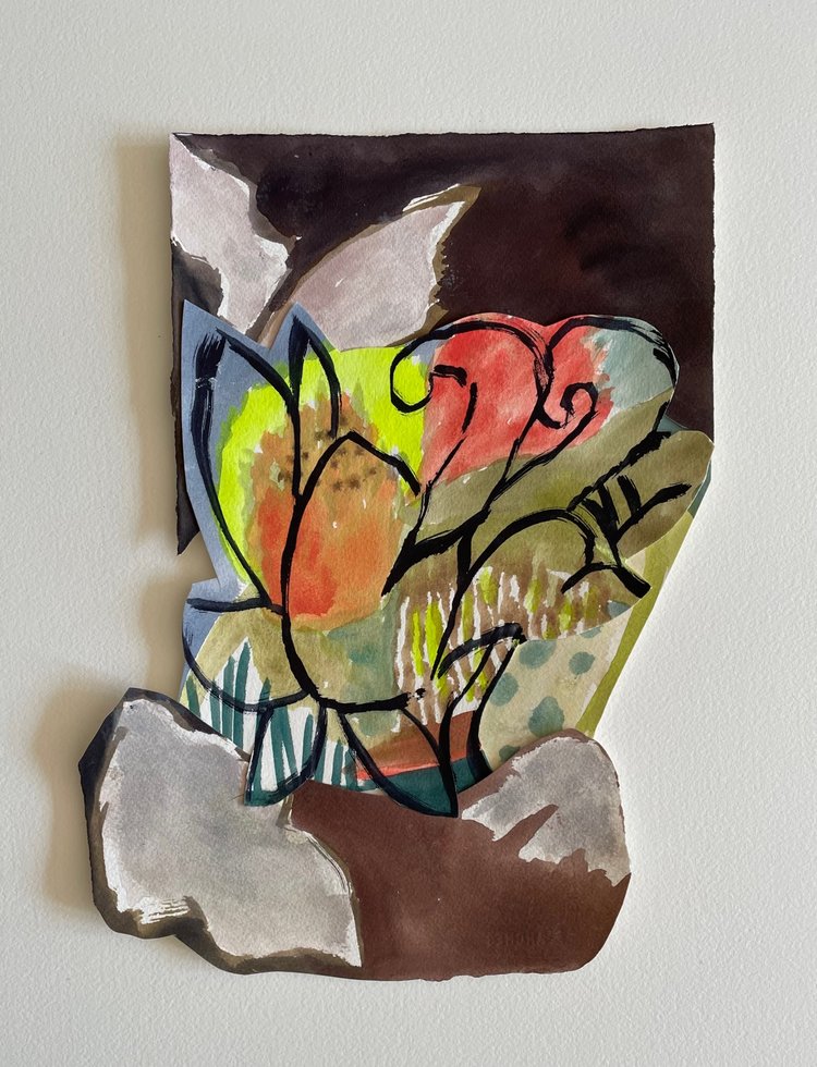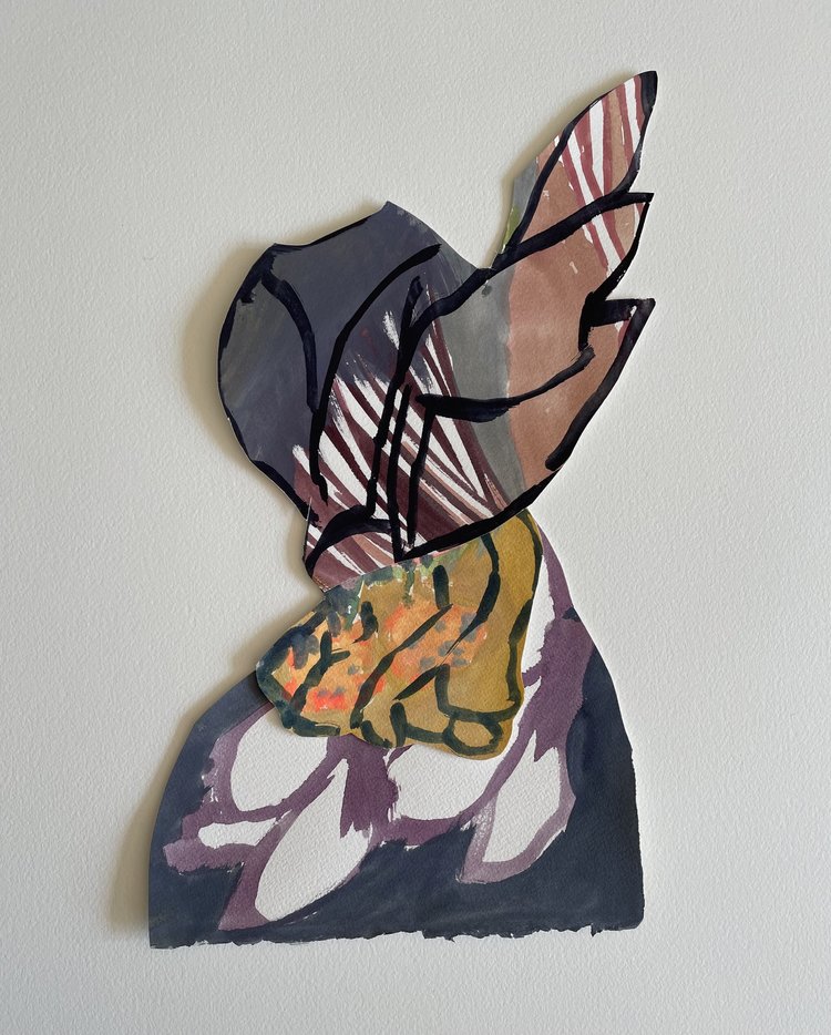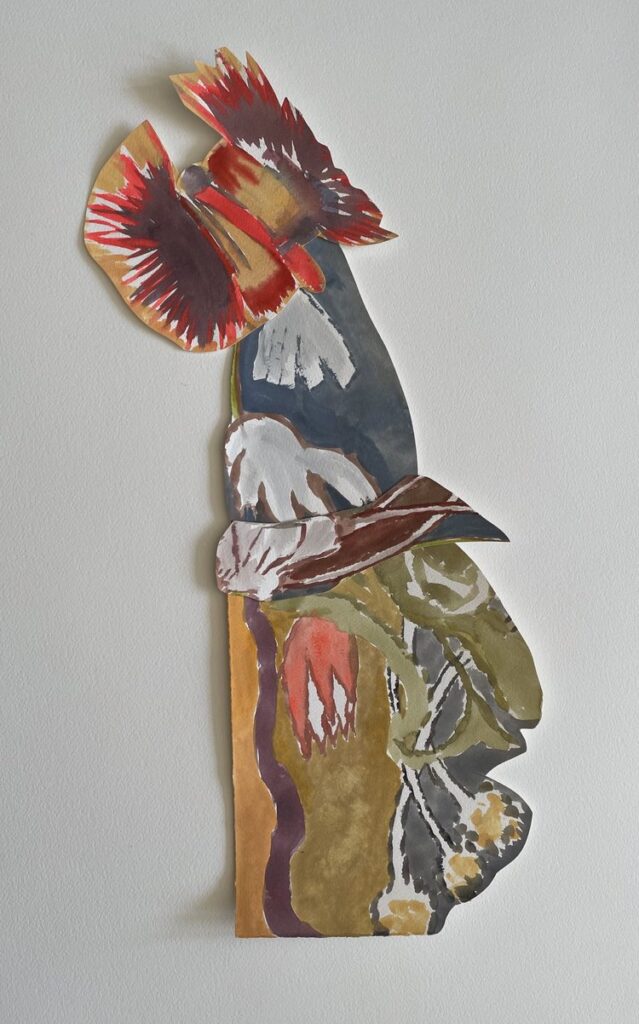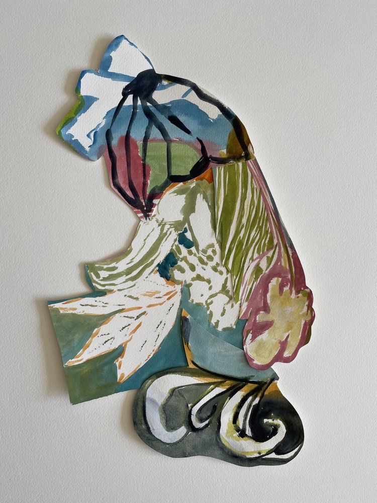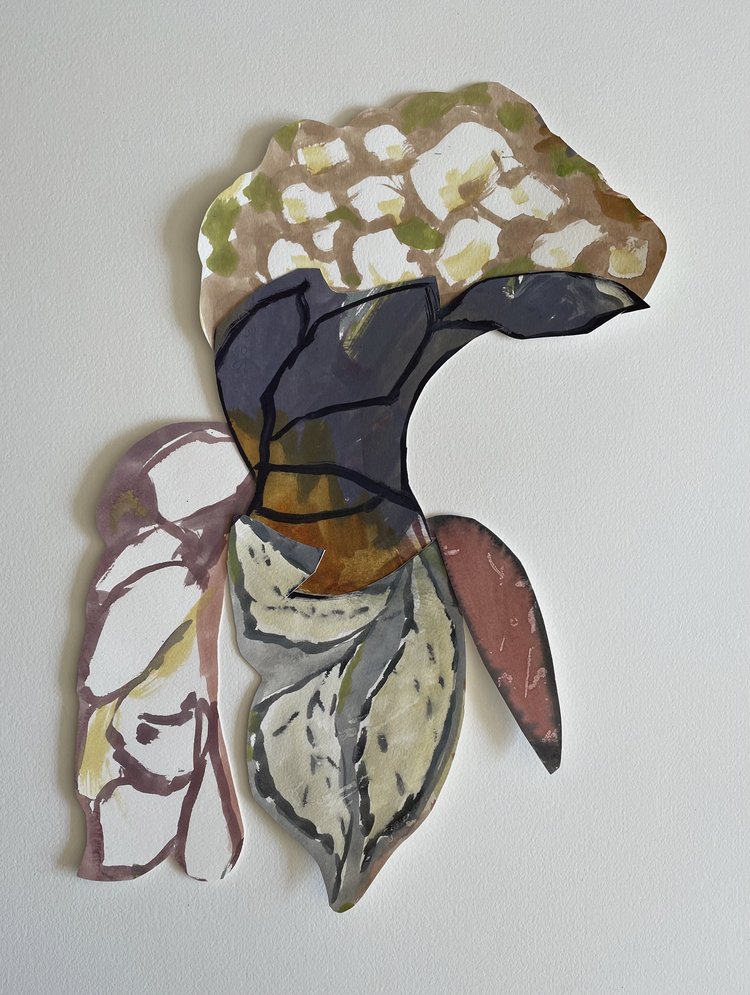 Using water-based paints and mixed media on cut, layered paper, the artist creates imagined beings and fluid forms—hybrids where plant and human intertwine, where identities expand into new l ife forms that express the joy and privi lege of being alive.