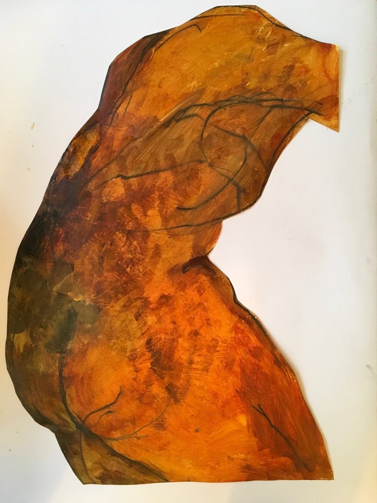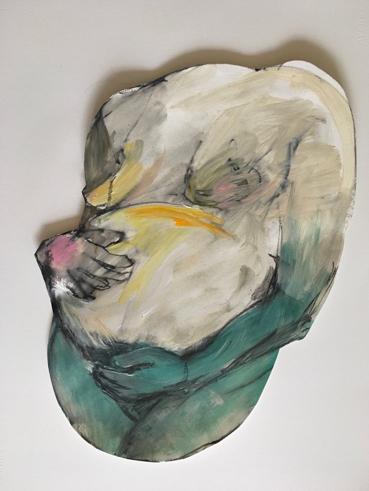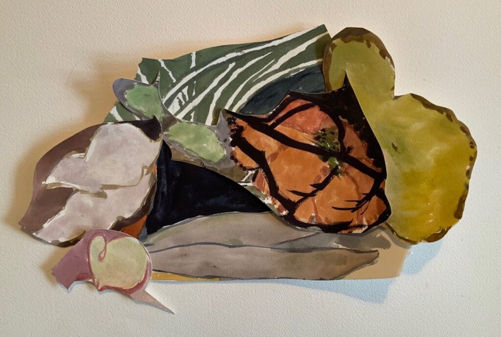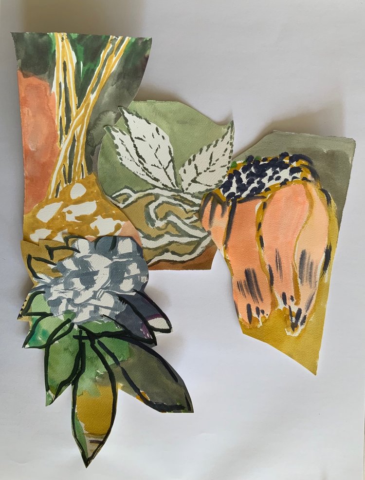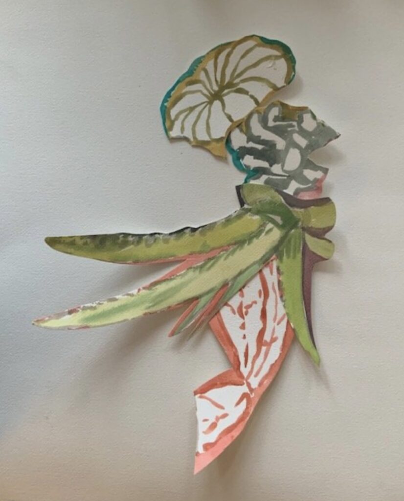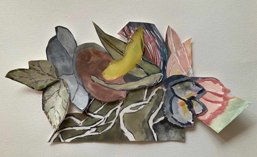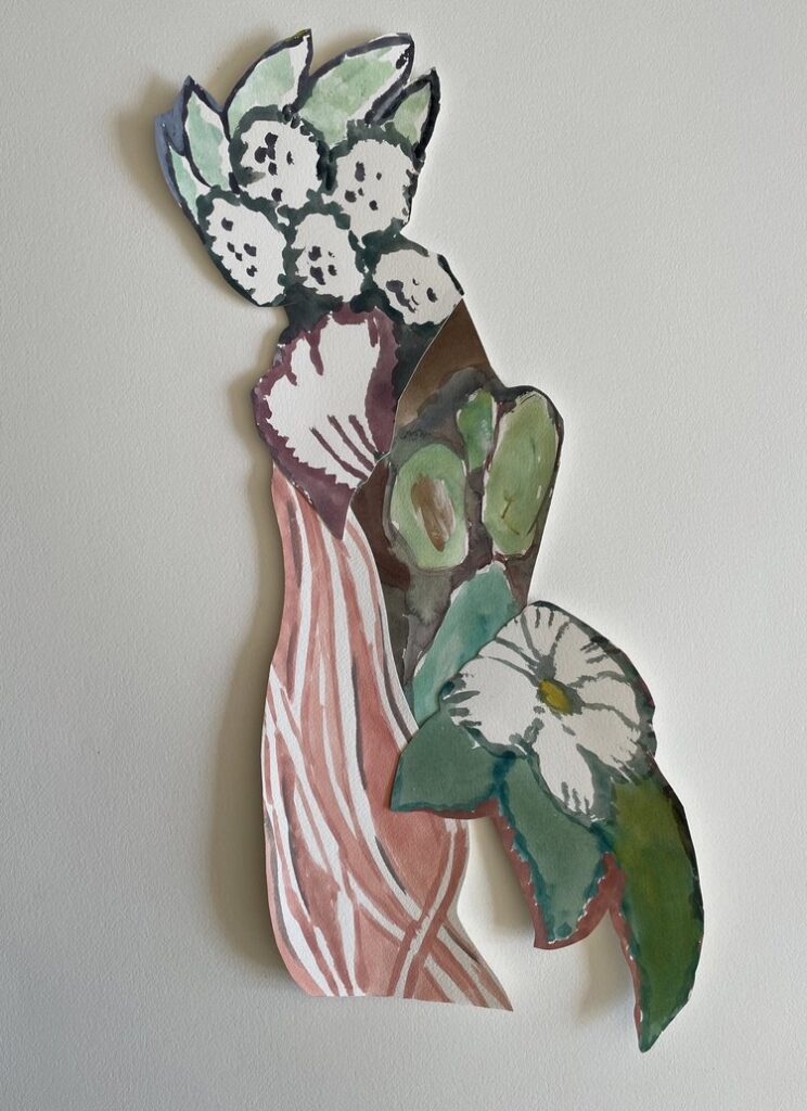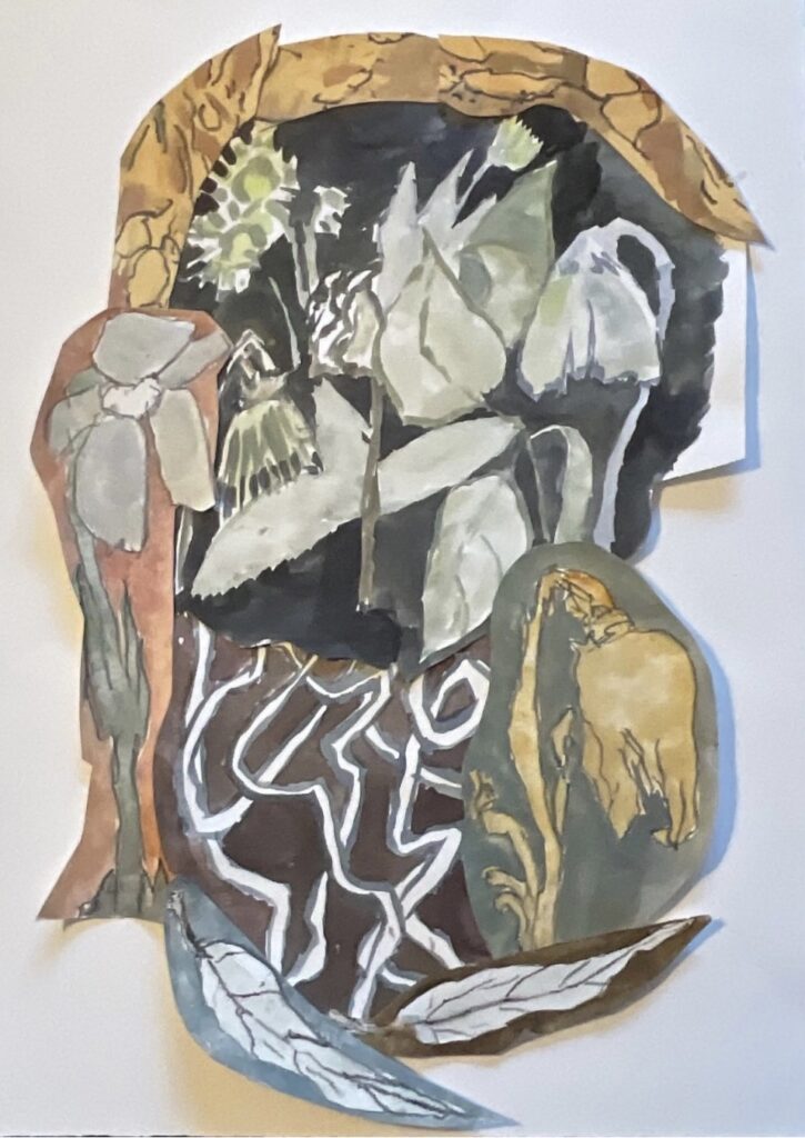 Using water-based paints and mixed media on cut, layered paper, the artist creates imagined beings and fluid forms—hybrids where plant and human intertwine, where identities expand into new l ife forms that express the joy and privi lege of being alive.